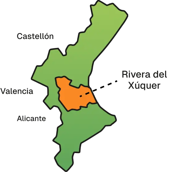 Situada en la ciudad de Xàtiva, en la provincia de Valencia. La finca se encuentra dentro de la zona de denominación Kaki Ribera del Xúquer, la más grande de España, donde se produce aproximadamente el 85 % del total nacional de esta fruta.